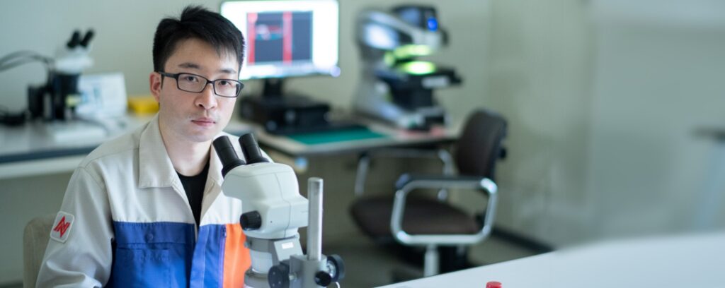 一方、顧客が求める高度な特性を満たすための設計は、きわめて難度の高いミッションであった。そこに大きく貢献したのが、NDKのシミュレーション技術だ。極小の精密な製品を作る上で勘・コツに頼ったプロセスを踏んでいては、開発のスピードや精度は不安定なものとなる。NDKでは早期から、この技術に投資を行い、開発の効率化・スピードアップを図っていたのだ。シミュレーション担当者は、自らの仕事についてこう語る。
